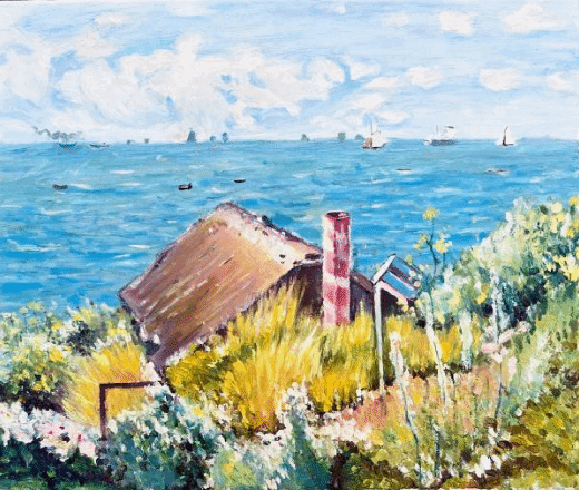 作者:王晓冉 莫奈《圣·阿德列塞小木屋》复制作品 尺寸:50*60cm 布面油画