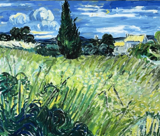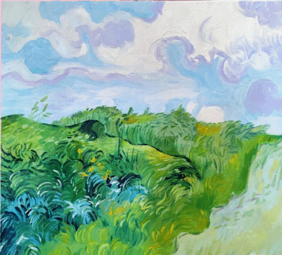 作者:王珺 文森特·梵高 《柏木绿麦田》复制作品 尺寸:50*60cm布面油画