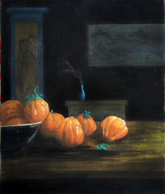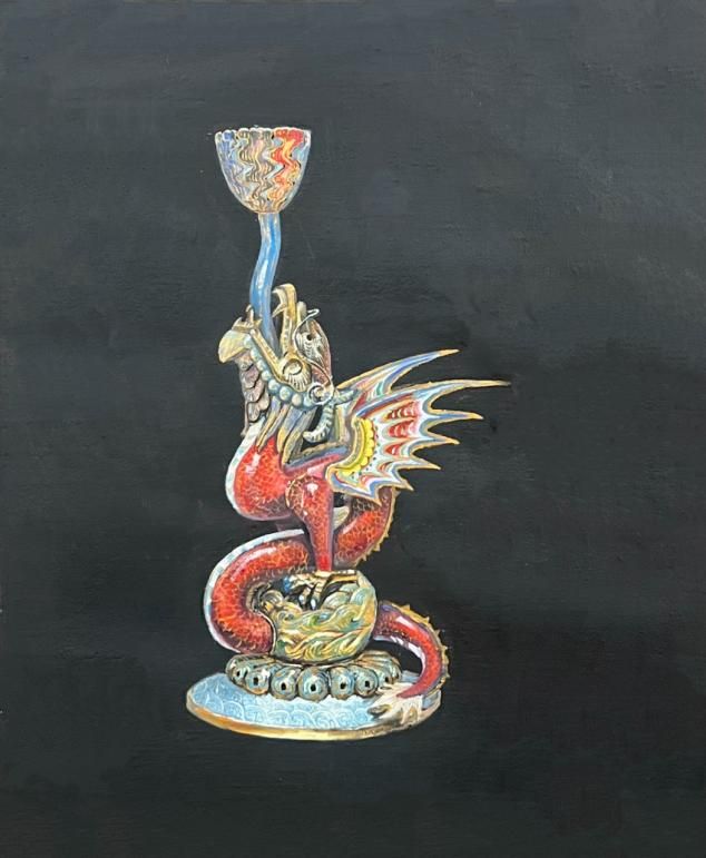 作者:张皓然《掐丝珐琅飞龙烛台》尺寸:50*60cm 布面油画