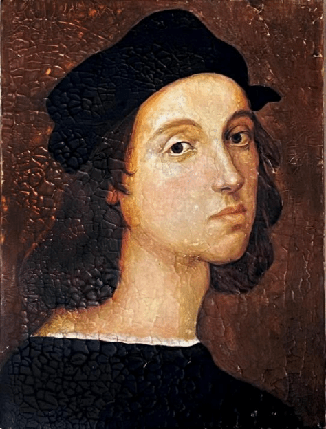 作者:闫鸿历 拉斐尔《自画像》复制作品 油性坦培拉 30*40cm