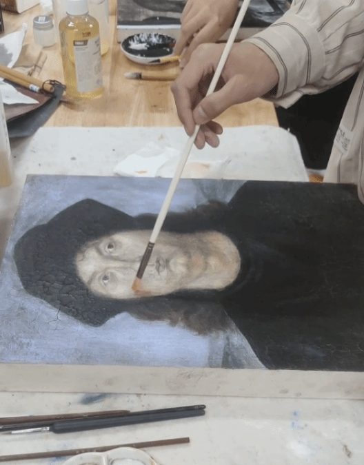 本课程的学习为同学们在油画修复课程奠定了坚实基础,不仅掌握了油画修复的基础知识和技能,更培养了细致入微的观察力和严谨的学术态度。希望同学们能够继续深化对油画材料与技法的研究,不断提升自己的技艺和修复水平,为文物保护事业做出更大贡献。(孙政)