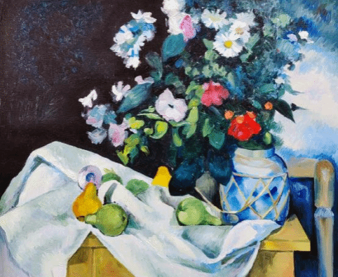 作者:丁一铭 保罗塞尚 《静物与鲜花和水果》 复制作品 尺寸:50*60cm 布面油画