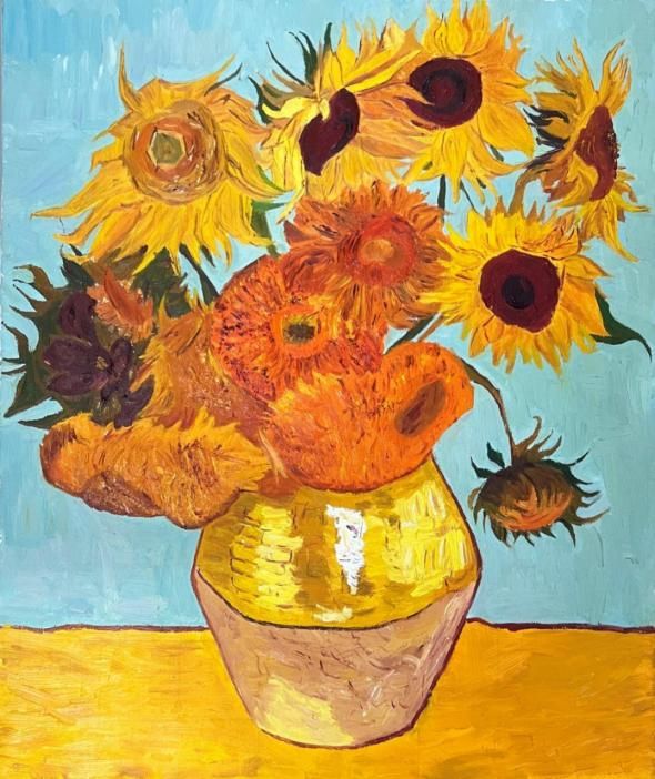 作者:李洪涛 梵高《向日葵》复制作品 尺寸:50*60cm 布面油画