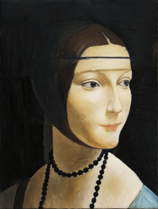 作者:徐倩 达芬奇《抱银鼠的女子》复制作品 水性坦培拉 尺寸30*40cm