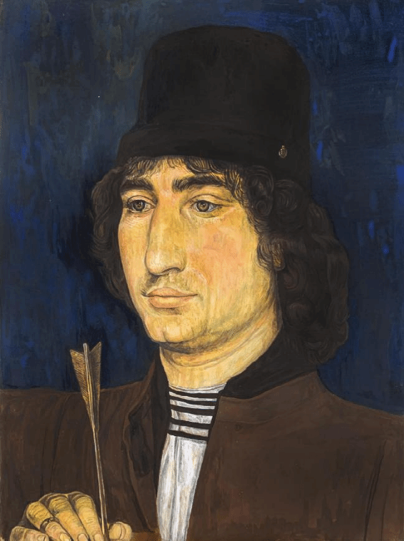 作者:厉珉彤 汉斯·梅姆林《持箭男子的肖像》复制作品 水性坦培拉