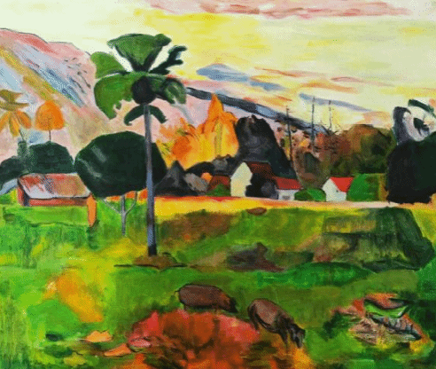 作者:李欢 保罗高更《油画风景》复制作品 尺寸:50*60cm 布面油画