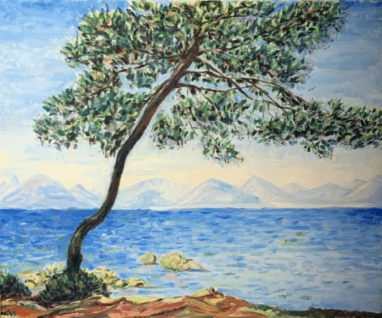 作者:孟岩 塞尚 《从埃斯塔克看马赛湾》 复制作品 尺寸:50*60cm布面油画