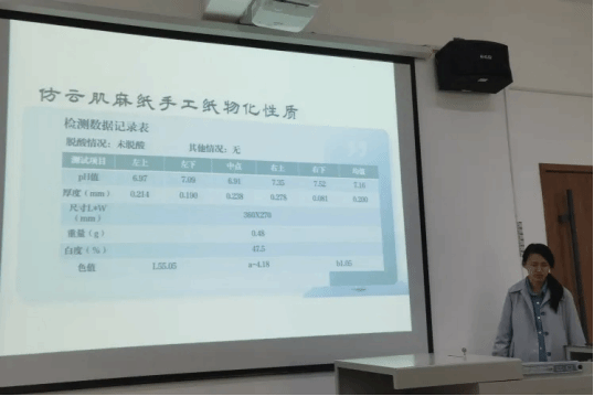 课程包括“传统手工纸”、“传统手工纸与纸质文物”和“传统造纸工艺”三个部分。在课程考核环节,要求员工完成一种中国传统手工纸的调查报告,模拟制作和在实验室分析检测。员工们选择了构皮纸、桑皮纸、狼毒纸、白棉纸、东巴纸、玉扣纸、西和麻纸、夹江竹纸等作为研究对象,完成了从调研、制作、纸张检测实验等工作,完成了课程学习任务。