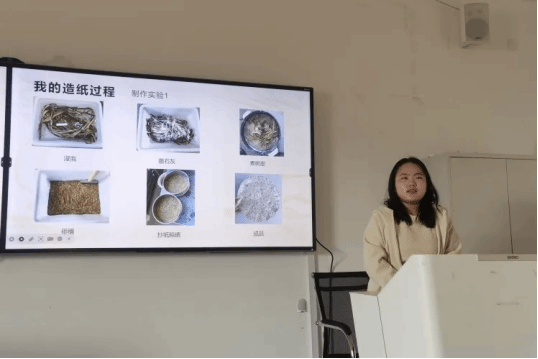 杨慧琳:通过造纸课的细腻体验,我们学会了将自然的馈赠转化为纸张的温柔;在每一次搅拌与铺展中,我们不仅触摸到了历史的脉络,更学会了如何将时间的印记,细腻地镌刻在每一页纸张之上,让传统文艺之魂得以传承。