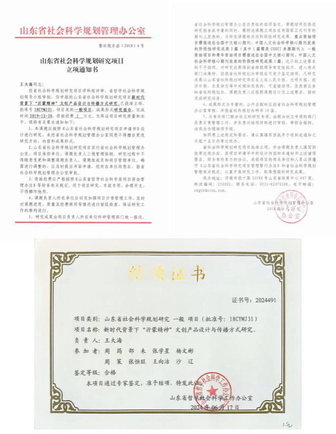 上一条:项目名称3:《虚拟现实技术在设计类专业课程教学实践中的应用研究》校级 下一条:项目名称1:《鲁锦产业高质量发展策略下的创意设计实践》立项山东软科学研究会“产教融合研究智库专项”一般项目