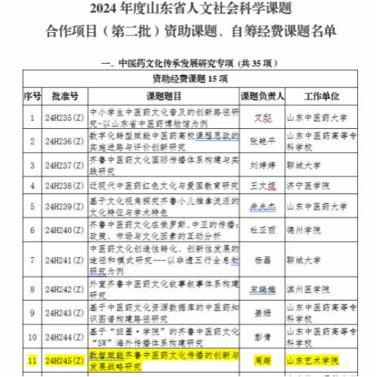 项目名称7:《数智赋能齐鲁中医药文化传播的创新与发展战略研究》山东省人文社会科学课题合作项目资助课题