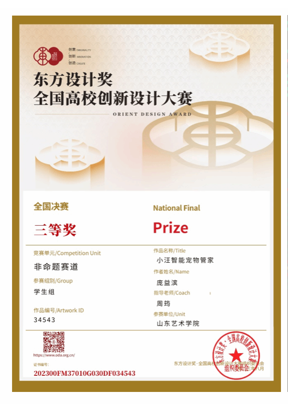13. | 2024.11 | “小兽杯”全国老员工宠物用品设计大赛 优秀奖 | 省部级 |