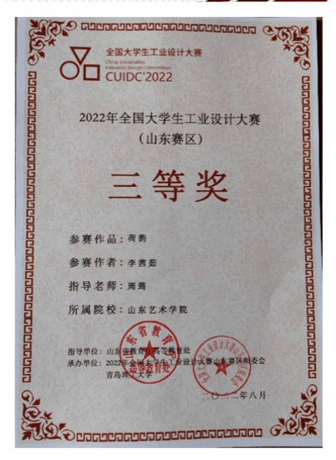 36. | 2022.12 | 2022山东省专业学位研究生美术与设计作品大赛 优秀奖 | 厅局级 |