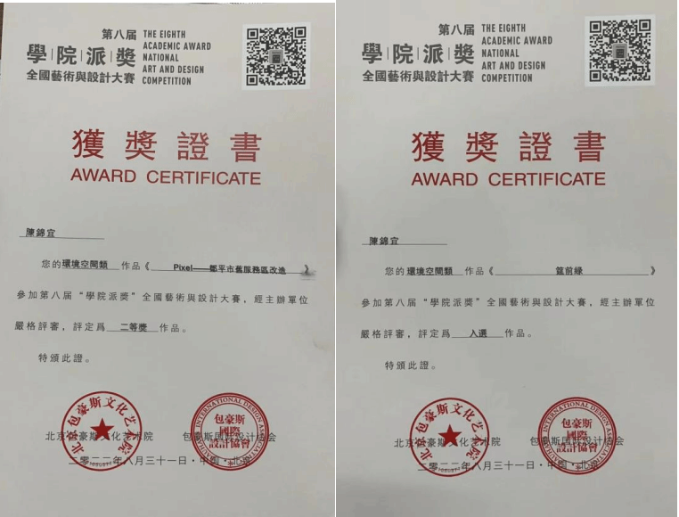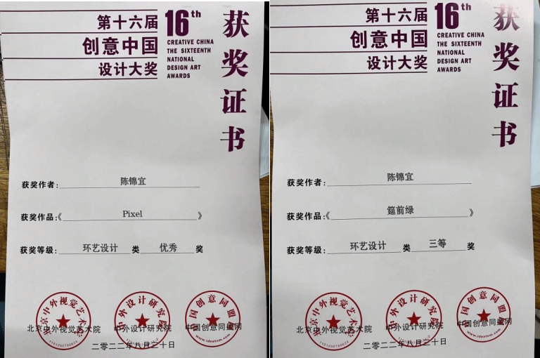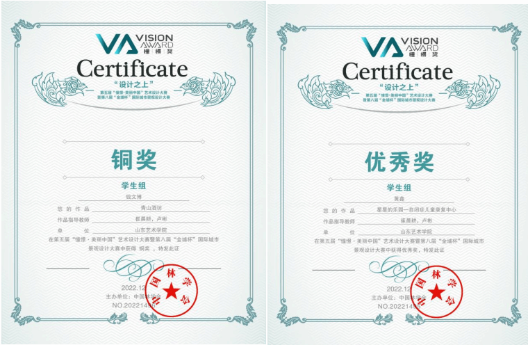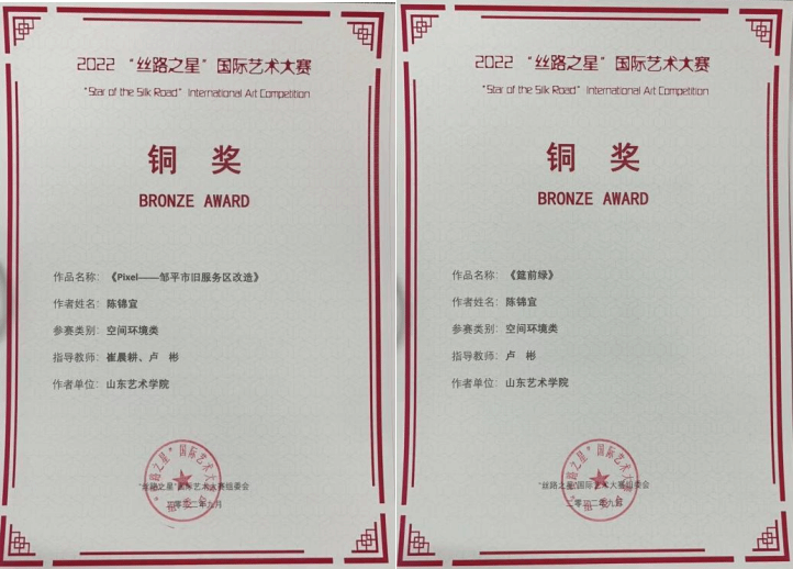 78. | 2022 | 第五届“憧憬·美丽中国”艺术设计大赛暨第八届“金埔杯”国际城市景观设计大赛铜奖 | 省部级 |