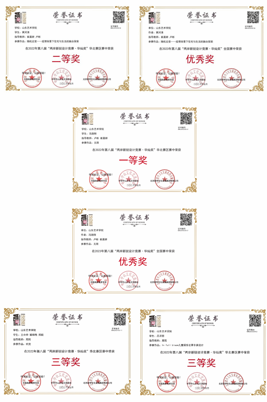 53. | 2023.5 | 第八届“两岸新锐设计竞赛·华灿奖”三等奖 | 省部级 |