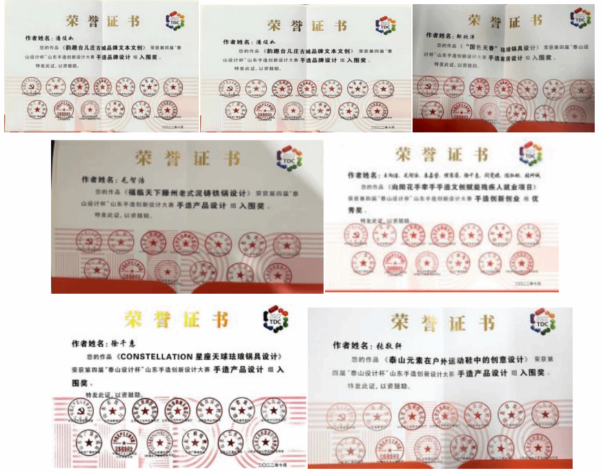 22. | 2023.8 | 2023年“ 山东手造 齐品淄博”城市礼物创意设计大赛 青年创客奖 | 厅局级 |