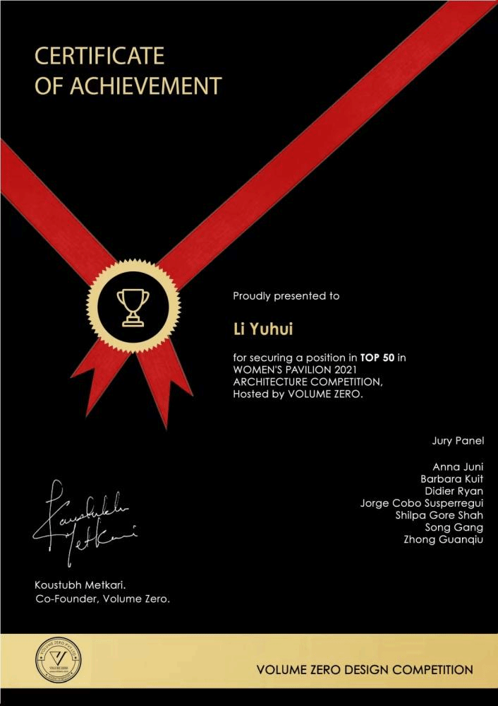 72. | 2022.9 | VOLUME ZERO DESIGN COMPETITION零体积设计竞赛 | 省部级 |