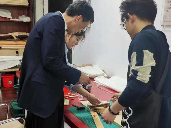 济南市图书馆馆长王海,古籍部主任徐腾飞及有关工作人员全程参与陪同。活动结束后,双方进行了简短的总结交流,王海馆长对我专业员工的表现给予了充分的肯定,并表示要以此次合作为契机,充分发挥各自优势,积极寻求多方面合作,在文化传播、技艺传承等方面进行积极探索,实现产教融合、校企合作双赢、多赢局面。
