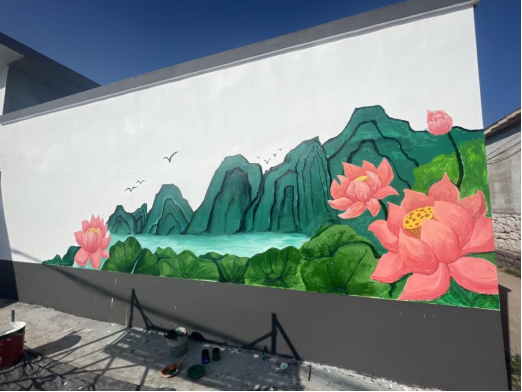 炎炎烈日下,弯腰、抬臂、起手、落笔、上色,画笔在光影间跳跃,当细腻的笔刷触碰粗糙的墙面,留下了我们对乡村的热爱,虽然艰辛,但却珍贵,墙绘也成为街道上一道亮丽的风景线。他们用画笔描绘美丽的绿豆囤村,赋能乡村振兴,不仅令人愉悦,还为乡村带来了活力和自豪感,不仅让乡村居民感到自豪和自信,也激发他们参与乡村振兴的热情和动力,为乡村振兴添砖加瓦。