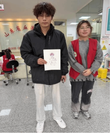 献血屋里,志愿者们的身影成为一道亮丽风景线。他们提前来到长清大学献血屋,穿上红马甲,做好各项准备工作,为首次献血者拍摄打印献血照片,引导他们测量血压、穿鞋套,为有疑虑的献血者讲解自己的献血体验,营造出一个轻松愉快的献血环境。随后把提前绘制好的治愈系简笔画作为礼物送给每一位献血者,并现场绘制肖像画,以实际行动诠释着无私奉献的精神,为献血事业贡献着自己的力量。