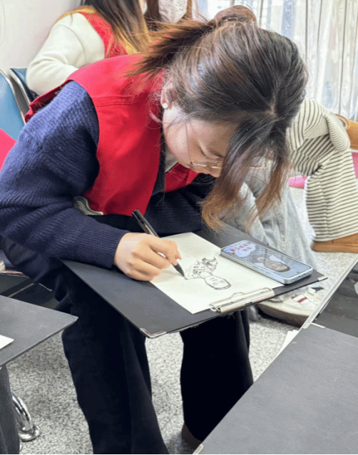 冰天雪地寒气逼,岁月如梭岁月催。随着时间的推移,转眼来到了2024的最后一个月。蜜蜂公益志愿服务团的脚步依然未停,伴着寒冬的暖阳,在这个清晨再次来到长清大学城献血屋进行为献血志愿者绘制肖像画活动。